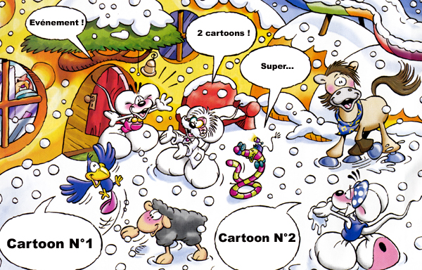 Clique soit sur la bulle du cartoon N°1 ou sur celle du cartoon N°2